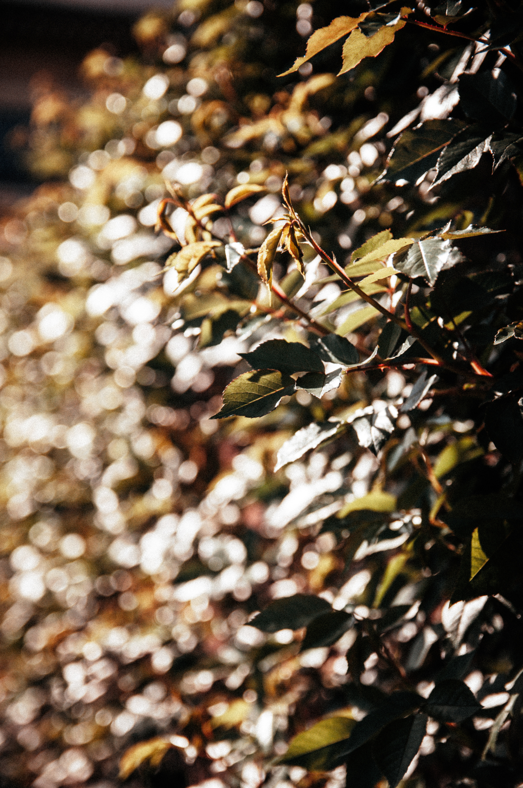 夕日に輝く生け垣