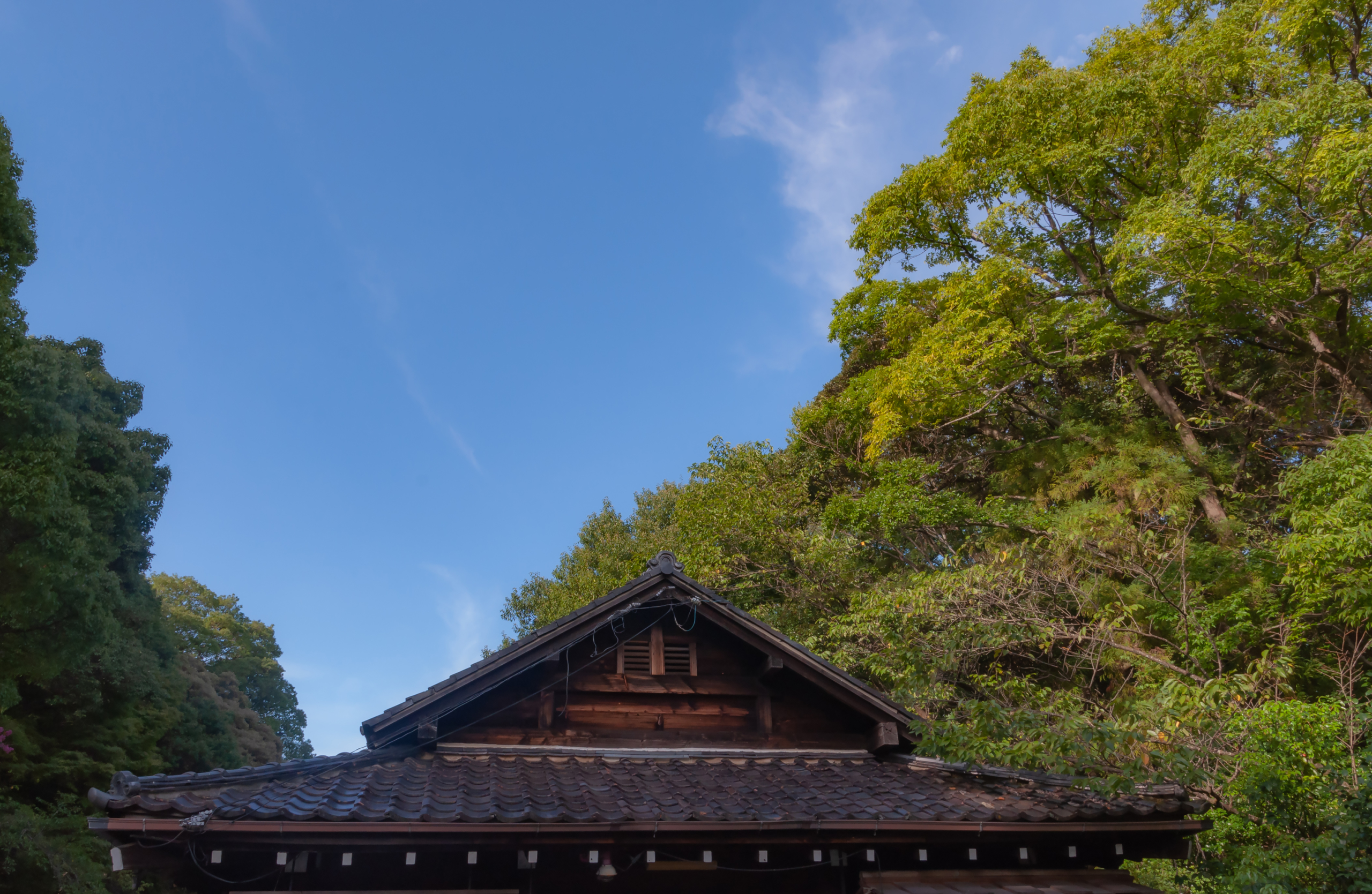 木々と青空と日本家屋